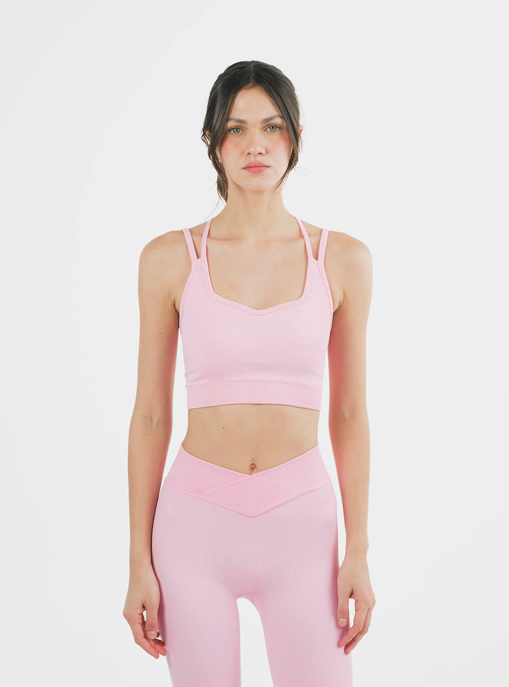 Espalda protagonista: Cruce sutil que resalta, tela extra, suave y elástica.